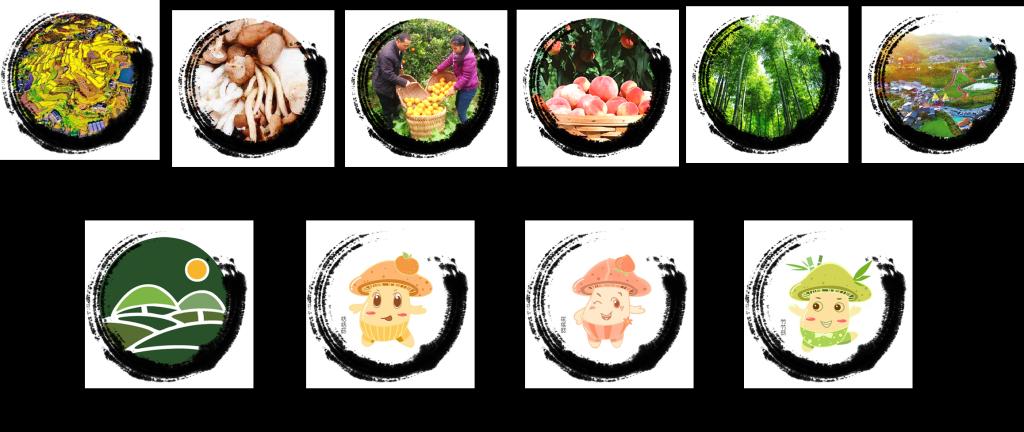 二、艺术IP打造:结合绿水村自然景观、经济产业、人文文化特征,重点对绿水村视觉形象系统VI、农特产品包装、超级IP文创进行整体策划,对绿水村的形象定位、吉祥物、公共标识、产品包装、办公用品、文创产品等进行详细设计,充分展示绿水村的农业特色、旅游资源、文化形象,助力乡村文化产业的振兴。其中,绿水村形象VI以“山脉、梯田、菌菇、红日”为基本设计元素,绿色山脉与梯田展现绿水村的农趣美景,菌菇与红日寓意绿水村的产业发展与未来希望,方案突出人与自然和谐共生的理念,蕴涵绿水村的农耕文化、菌谷文化和田园风光。