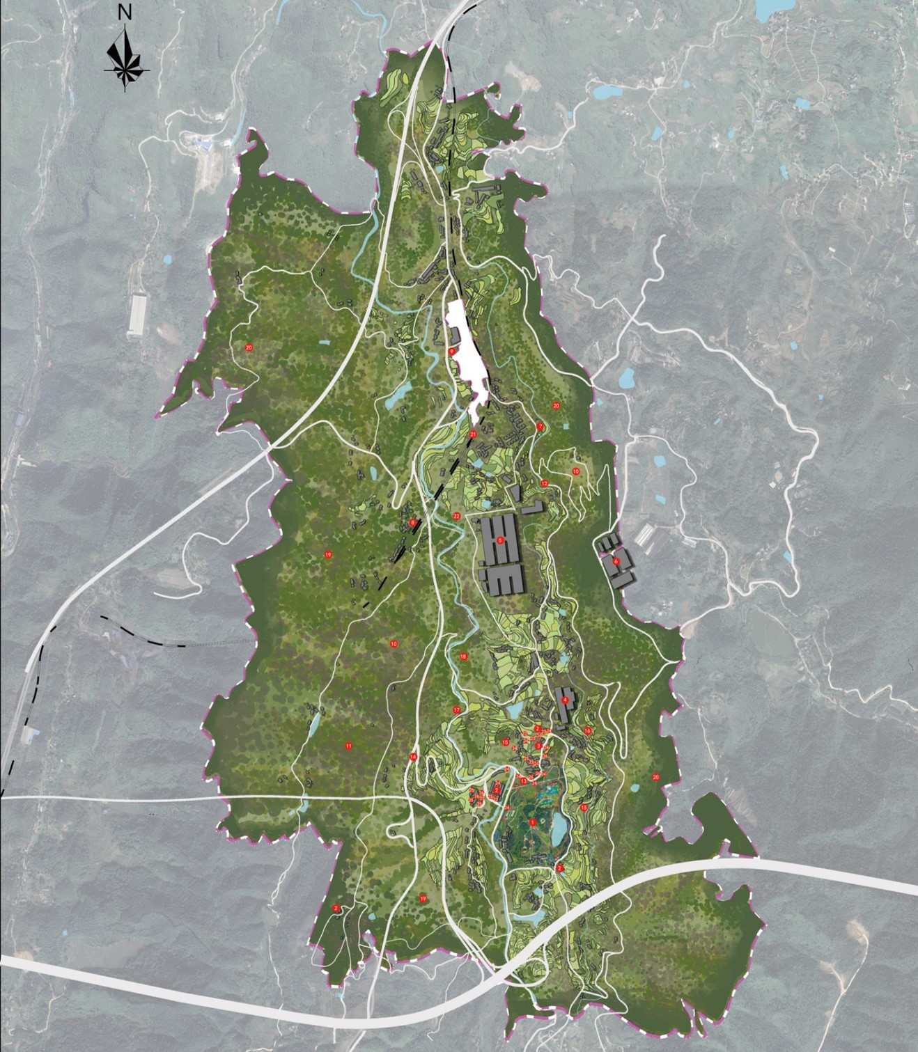 四、景观设计:以“一轴两点三片”为景观结构,将村入口及工厂这两个节点与便民中心、小竹林社、水井湾社三个片区用一条景观轴线串联,充分利用景观再设计,在传统和现代中找到平衡,以旅游景区建设带动乡村发展,实现乡村景观区化和景点化,从而达到乡村与景区融合协调发展的目的,力求打造一个一人宜居易旅的社会主义新农村典范。