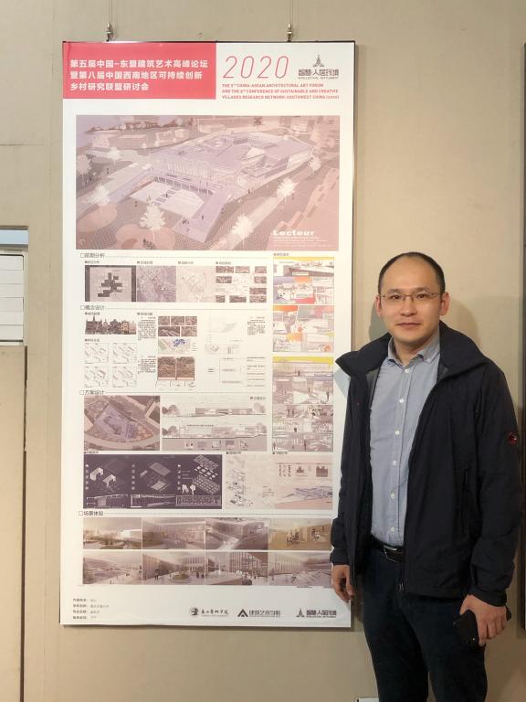 本次论坛同时举办了“智慧·人居环境”教学成果系列展,由西南高校环境设计成果展(部分)、第十届中国空间设计大赛(广西赛区)作品展览(部分)、“中国非遗传承人群研培计划”广西少数民族木构建筑营造技艺传承与创新研修班、染织绣技艺传承与创新设计研修班作品展(部分)等组成的190块建筑艺术设计专业的作品展板集中展出。展出作品主要反映各高校在建筑艺术设计专业教学方法、教学模式探索等方面取得的成果,代表区内外高校专家、学者对“民族与世界”“传统与现代”“自然与现实”“文本与实物”的思考,多维度呈现教师与学生对西南地区发挥地域性优势在文化理念、价值、精神等方面的探索,汇集研究联盟及相关科研机构关于西南地区乡村(小城镇)近年来在村落保护、人居环境改善、建筑改造更新等方面的实践案例。我校许可教师指导的作品《lecture》及邱雅雄同学等的作品《铜罐八景—泛旅游背景下铜罐驿水驿古街规划与建组设计》应邀参展。