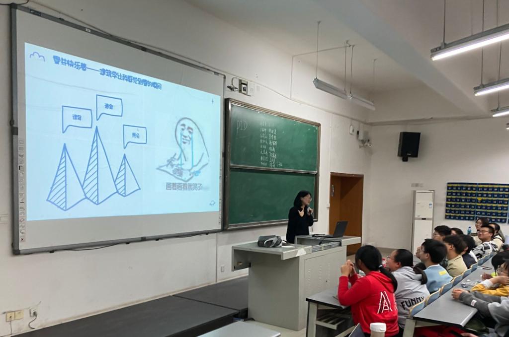 李雪晴学姐通过自己大学生活的日常经历,告诉同学们就读建筑学专业累并快乐着,要认真掌握各项技能,合理利用假期时间,保持积极的心态,要加强手绘能力、电脑软件运用、审美能力的培养。她指出建筑学专业是一个不断积累的过程,目标、坚持、努力都很重要,没有天生的成功者,只有后天的努力者。