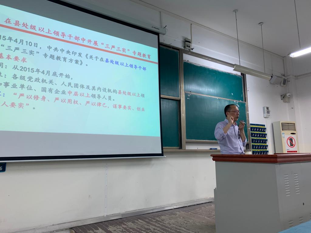 4月23日晚,李少奇教授主讲第三讲《新时代征程中全面从严治党》。他详细讲解了习近平总书记在党的十九大报告中所强调的:“中国特色社会主义进入新时代,我们党一定要有新气象新作为。”他强调,在新的历史条件下,我们必须按照党的十九大对党的建设作出的部署,以党的政治建设为统领,全面推进党的政治建设、思想建设、组织建设、作风建设、纪律建设,把制度建设贯穿其中,深入推进反腐败斗争,推动全面从严治党向纵深发展,把党建设得更加坚强有力。