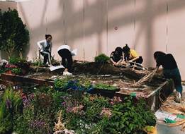 自今年3月竞赛通知发布以来,我校伟德体育官网积极响应,结合我校《植物景观规划设计》一流课程建设,对接课程实践教学内容,组织2018级风景园林专业师生组建了8支参赛团队。经过一个月的线上线下教学方式以及课内课外不断完善设计方案,在设计阶段,我校两组队伍获优秀奖,另两组队伍入围施工阶段。入围团队在进一步深化施工方案的基础上,购置材料、细化步骤、预搭建实践,为施工营建做足充分准备,竞赛当天,两组队伍从平场整地、定点放线、搭建竹构、搬运苗木到挖穴种植,在3米X4米的种植箱中,用花卉植物和园林技法创作出意境深远的微景观,倾注了大量心血与精力,最终保证了两组作品的完美呈现。