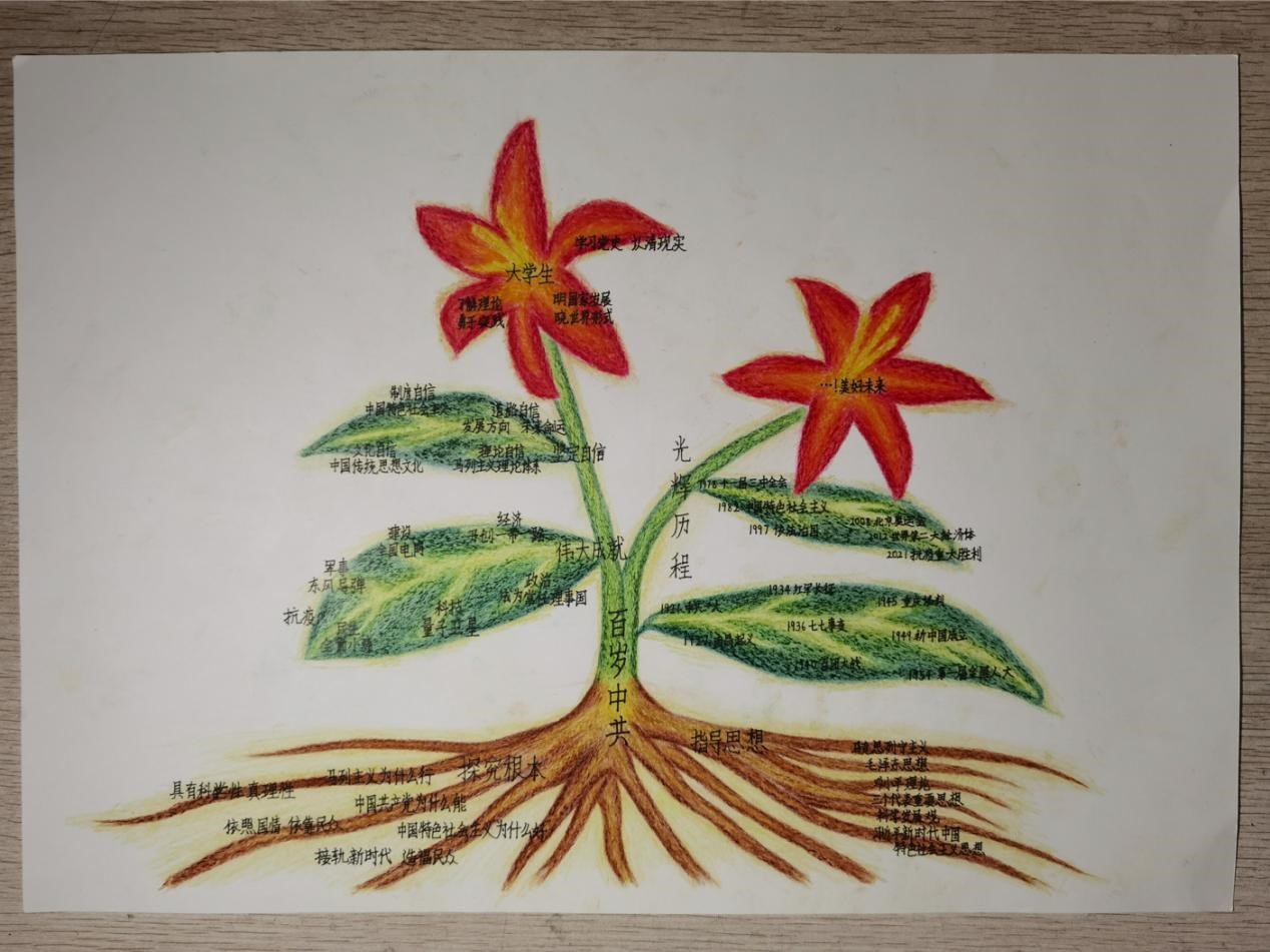 参赛作品回顾了党的历史进程,感悟革命精神,描绘了中国共产党百年光辉历程与不朽功勋,用党的光荣传统和优良作风引导大学生坚定信念、凝聚力量,用赤诚热情向党的百年华诞献礼。2020级学生吕正瀚作品《生长》以树为主体,形象地描述了党的奋斗历程和建设成果,展现了当代青年学子积极向上的精神风貌。2017级建筑学马翔宇的作品《不忘初心·继续前进》重温了党史、见证了初心,从党的历史中汲取宝贵的精神财富,表达了当代大学生应自觉肩负起实现中华民族伟大复兴的历史使命,让红色基因、革命薪火代代传承。