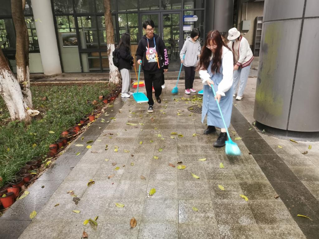 我院本科生党支部组织本院学校党校第84期发展对象开展了校园环境卫生大扫除活动。在三个小组长的带领下,30名同学分工合作、密切配合,对南岸校区二教楼下花园区域进行了全方位的清理打扫。
