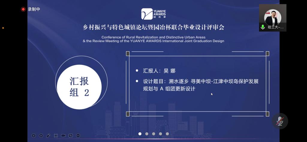 2022年5月17日,由园冶杯国际竞赛组委会和亚洲园林协会乡村振兴与特色城镇专业委员会联合主办的首届乡村振兴国际联合毕业设计评审会在线上举行。评审会期间,来自哈尔滨工业大学、天津大学、湖南大学、重庆交通大学、河北工业大学、台湾中国文化大学环境设计学院等全国知名院校的建筑、城规、景观以及环境专业的优秀毕业生汇报共12个乡村振兴联合毕设作品。我校入围作品《溯水逐乡 寻美中坝—江津中坝岛保护发展规划与A组团更新设计》由吴娜同学作了终期答辩汇报,获得评委专家的充分肯定。