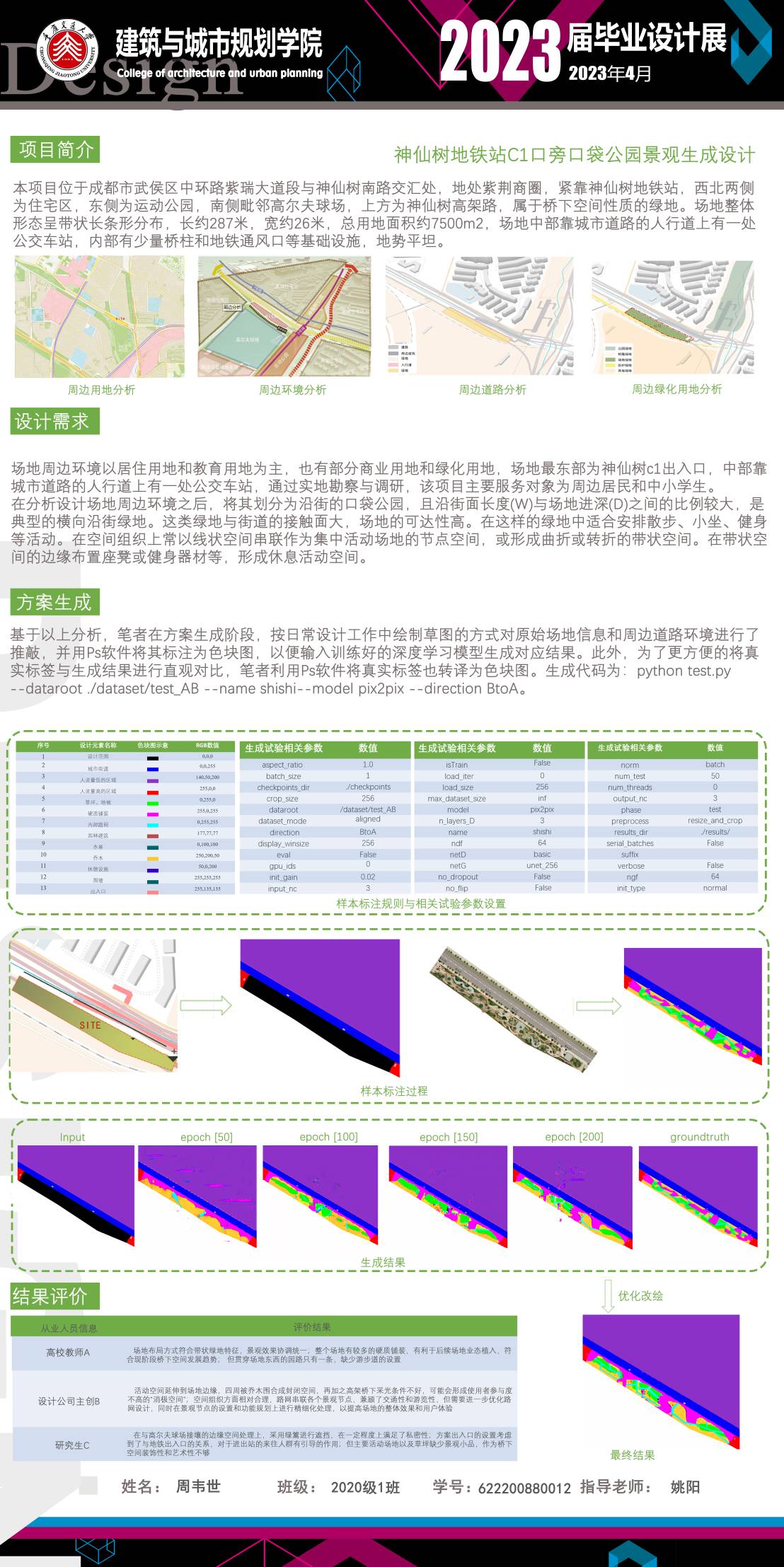 经过6位企业专家们认真严谨的评审和投票,根据本次的评奖规则总共评出一等奖2项,二等奖6项,三等奖10项。周韦世(作品名称:基于深度学习的口袋公园生成设计方法研究)和刘莹(作品名称:预警视角下石柱传统村落外部空间景观保护与提升策略研究)获得一等奖。最后企业专家们为所有获奖同学颁奖。