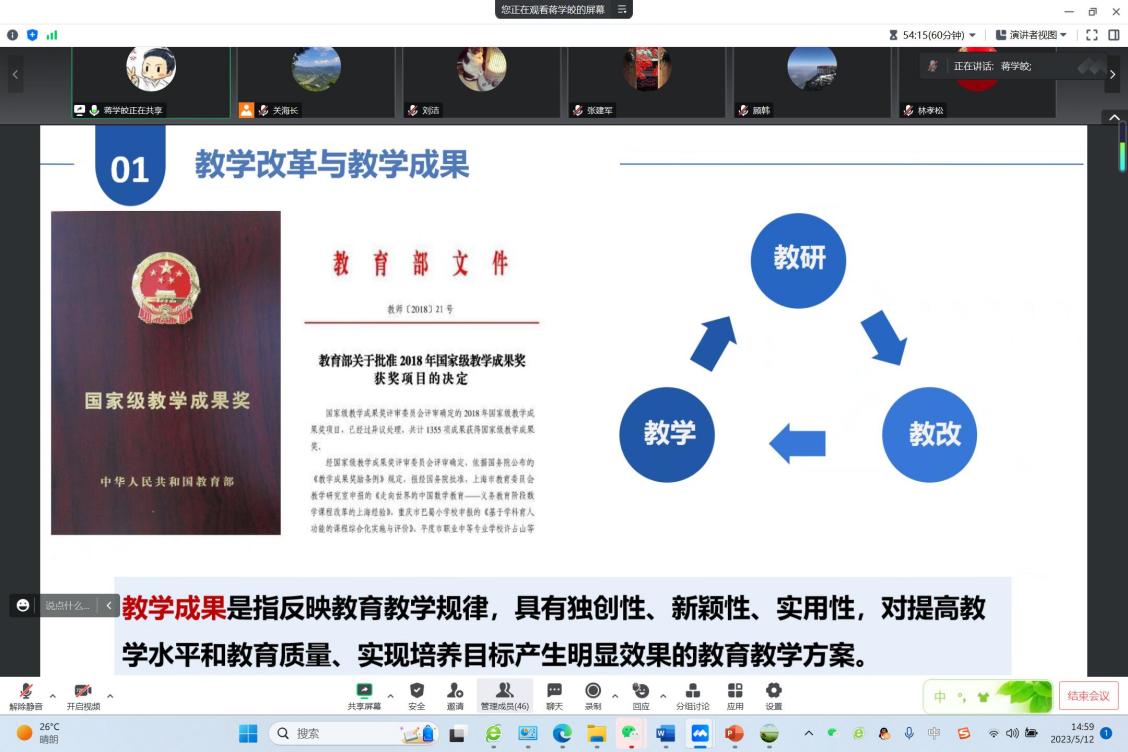 2023年5月12日下午,为提升全院本科教育教学水平,针对本科教学教研项目申报和课程项目开展集中培训,学院邀请了风景园林专业青年教师蒋学皎博士、副教授作专题培训,学院全体教师通过线上形式参加,培训会由学院副院长林孝松主持。