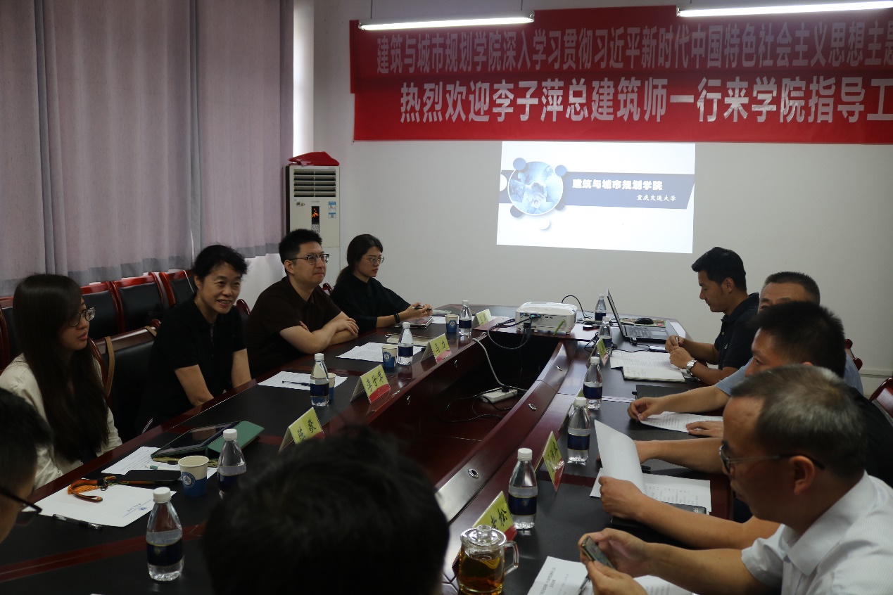 8月29日,中国建筑西北设计研究院李子萍总建筑师一行四人莅临伟德体育官网指导工作,并召开座谈会。学院领导班子成员、党委委员、院长助理,各系(办)、室负责人和部分教师代表参加此次交流座谈,会议由学院党委书记李志主持。