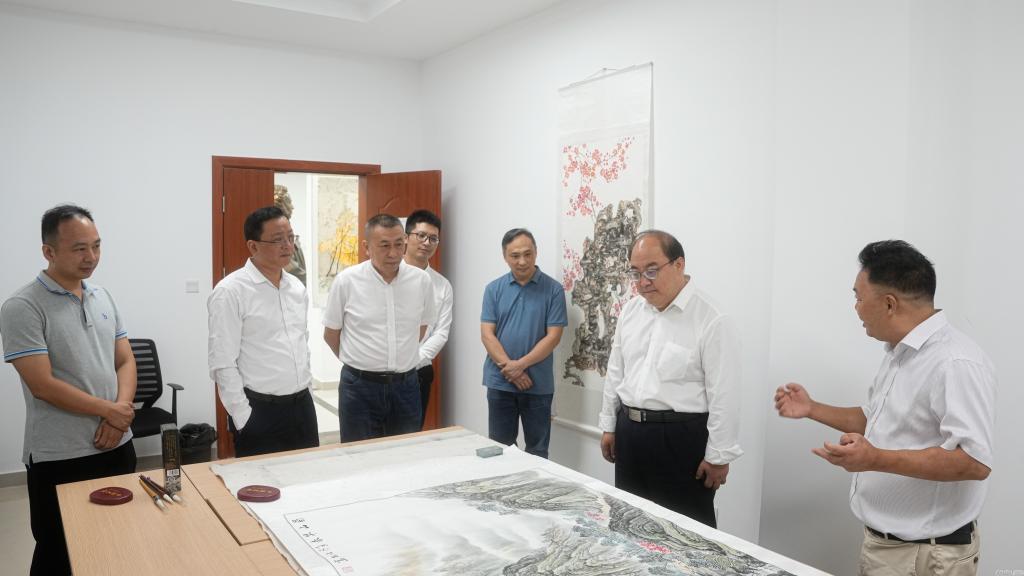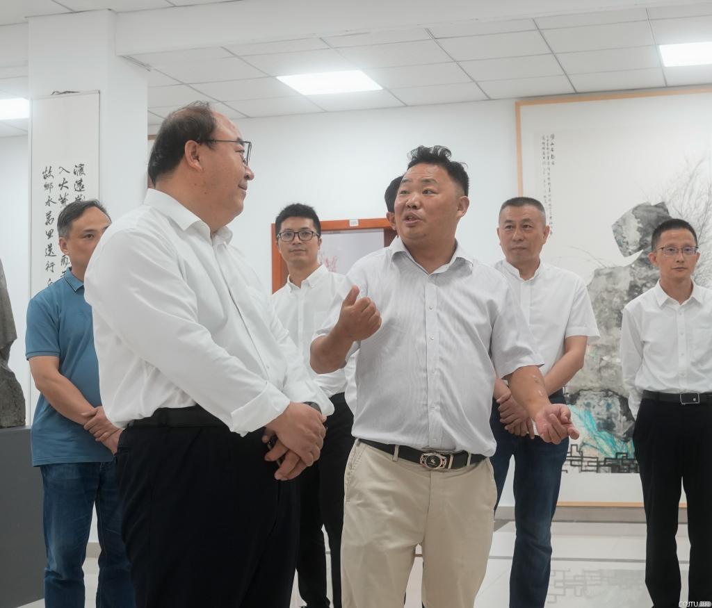 在调研过程中,宫辉书记参观美育基地彭江林艺术馆艺术展览厅,听取了彭江林、杨林、李志关于学校美育基地彭江林艺术馆建设、课程建设及发展规划的汇报。