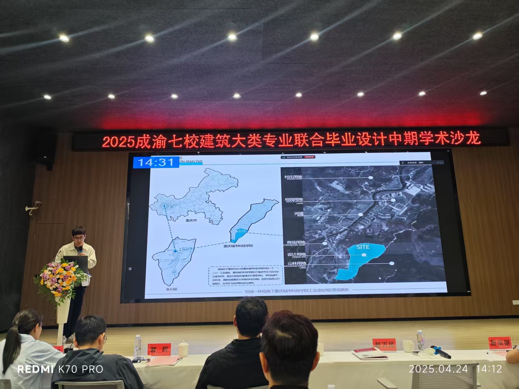 4月24日以“三线历史与校园现代融合——重庆128工业遗存城市更新”为主题的2025成渝七校建筑大类专业联合毕业设计中期汇报在重庆城市科技学院求是堂报告厅举行。重庆城市科技学院建筑与土木工程学院院长赵万民教授、重庆大学建筑规划设计研究总院有限公司总规划师许剑峰教授级高工、重庆市设计院有限公司一分院院长余水正高级工程师等知名专家学者以及来自七校的师生近80人参加了本次活动。