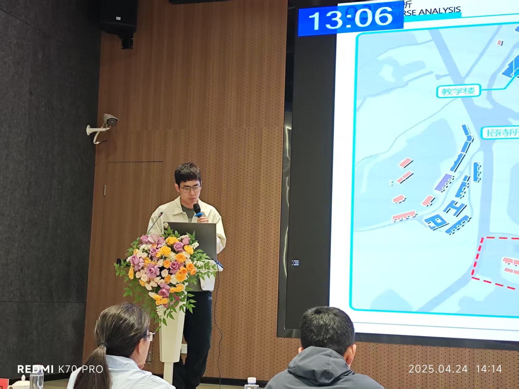 学院教师刘畅副教授带队,建筑学专业的黄凯清同学,风景园林专业的肖剀允同学以及城乡规划专业的加玉同学、王佳楠同学作为代表参与了活动。黄凯清同学和肖剀允同学代表我校学子进行了汇报,充分展现了我校学子扎实的专业素养和创新能力。
