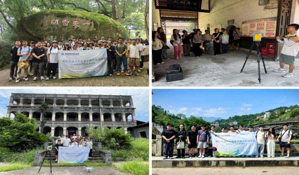 三年级以“应用创新”为主线,积极对接江津文管所,将聚奎中学、江津中学旧址以及中山古镇等历史文化遗产的数字化测绘纳入《建筑测绘》《古典园林认知》的课程选题,开展“双师同堂”的场景项目式教学。其中,建筑测绘实践围绕传统建筑与村落展开,既调研村落空间形态规划,又测绘单体建筑形制内涵。学生实地踏勘,掌握调研与测绘基本方法,深化对传统村落与建筑的理性认知。课程探讨保护、活化与现代化路径,培养学生协调古村落保护与发展的设计研究能力,传承历史文化精髓。建筑学及风景园林专业大三年级的123名学生在教师团队与江津文管所专家的共同指导下,分批赴江津聚奎中学、江津中学旧址、江津真武场马家洋房及江津中山古镇等五处历史文化遗产地进行测绘。强化运用前沿数字技术解决传统建筑测绘和保护中的实际问题,将三维激光扫描、历史建筑信息模型(HBIM)等前沿数字测绘技术,Context Capture、Metashape等专业软件均是首次引入课堂,不仅大幅提高了数据采集效率,还能够精准捕捉到历史建筑的细微纹理与复杂几何形态。