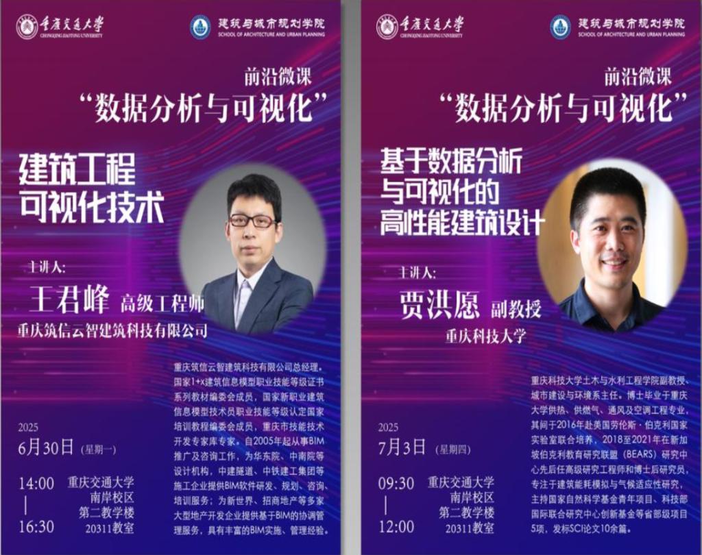 四年级则按照“前沿拓展”的培养思路,引导学生追踪学科专业前沿,迈向专业纵深领域,为后续的毕业设计和综合训练奠定基础。学院按照“人文”“绿色”“数智”三大方向精心设计了《前沿微课》系列课程,涵盖全球定位导航技术、智能建造、“双碳”战略等六大前沿领域。邀请重庆市地理信息和遥感应用中心教授级高级工程师胡艳、李朋龙等行业知名专家开讲,充分融合国际技术与应用实践,以“空天地”一体化等案例为载体,打破学科壁垒,构建起“技术—场景—政策”的前沿知识网络。