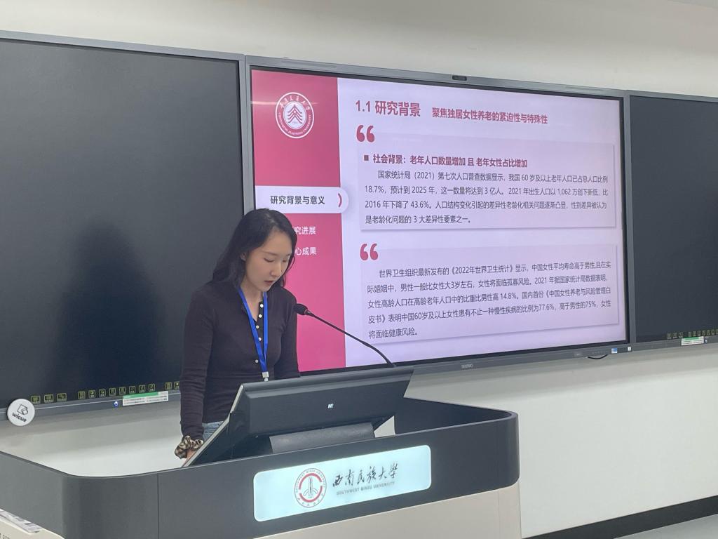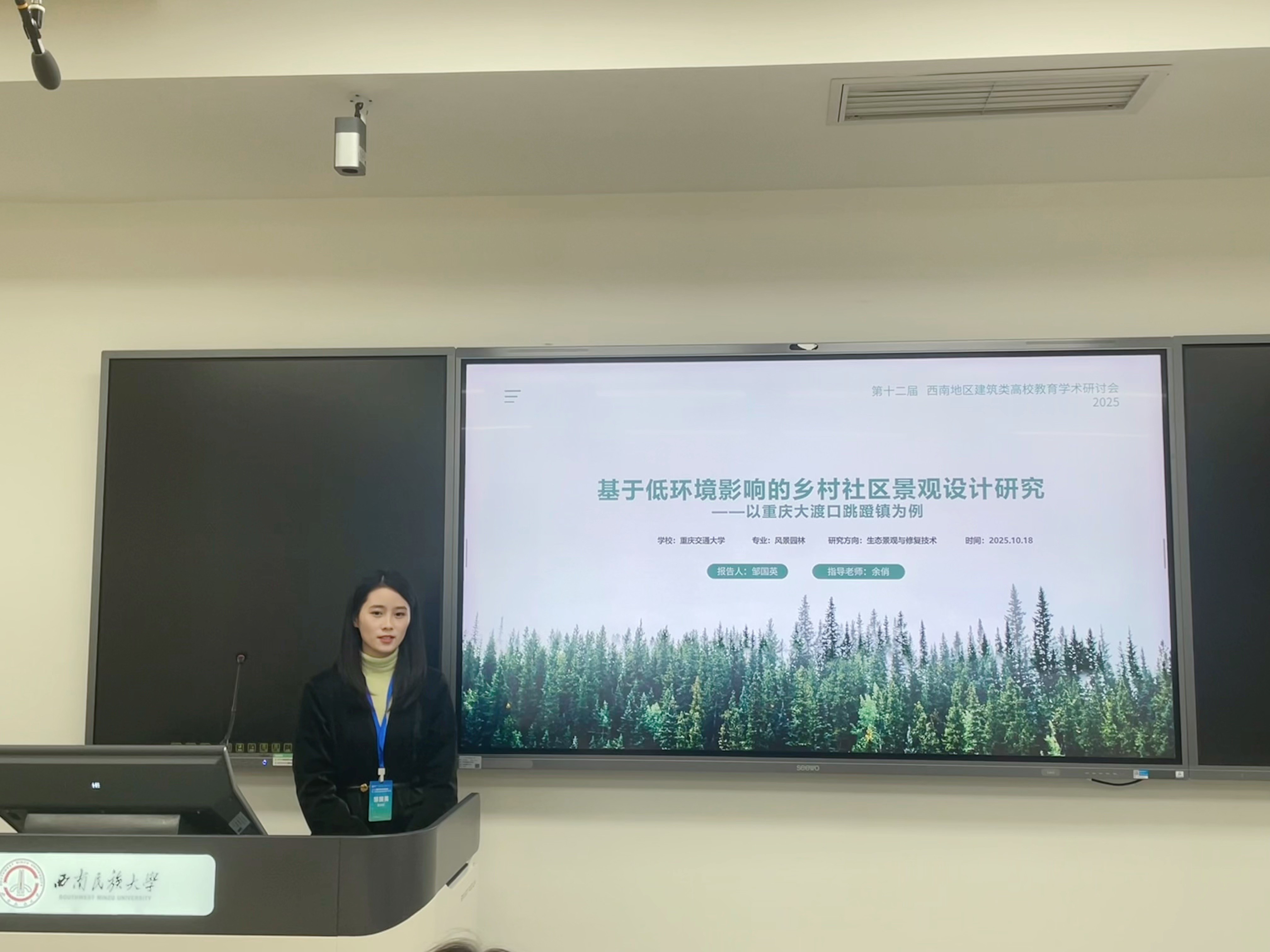 风景园林硕士研究生邹国英、黄溢琳在研究生论坛分别以“基于低环境影响的乡村社区景观设计研究——以重庆大渡口跳蹬镇为例”“重庆市中心城区独居女性居家环境适老化设计研究”为题进行了研究汇报。