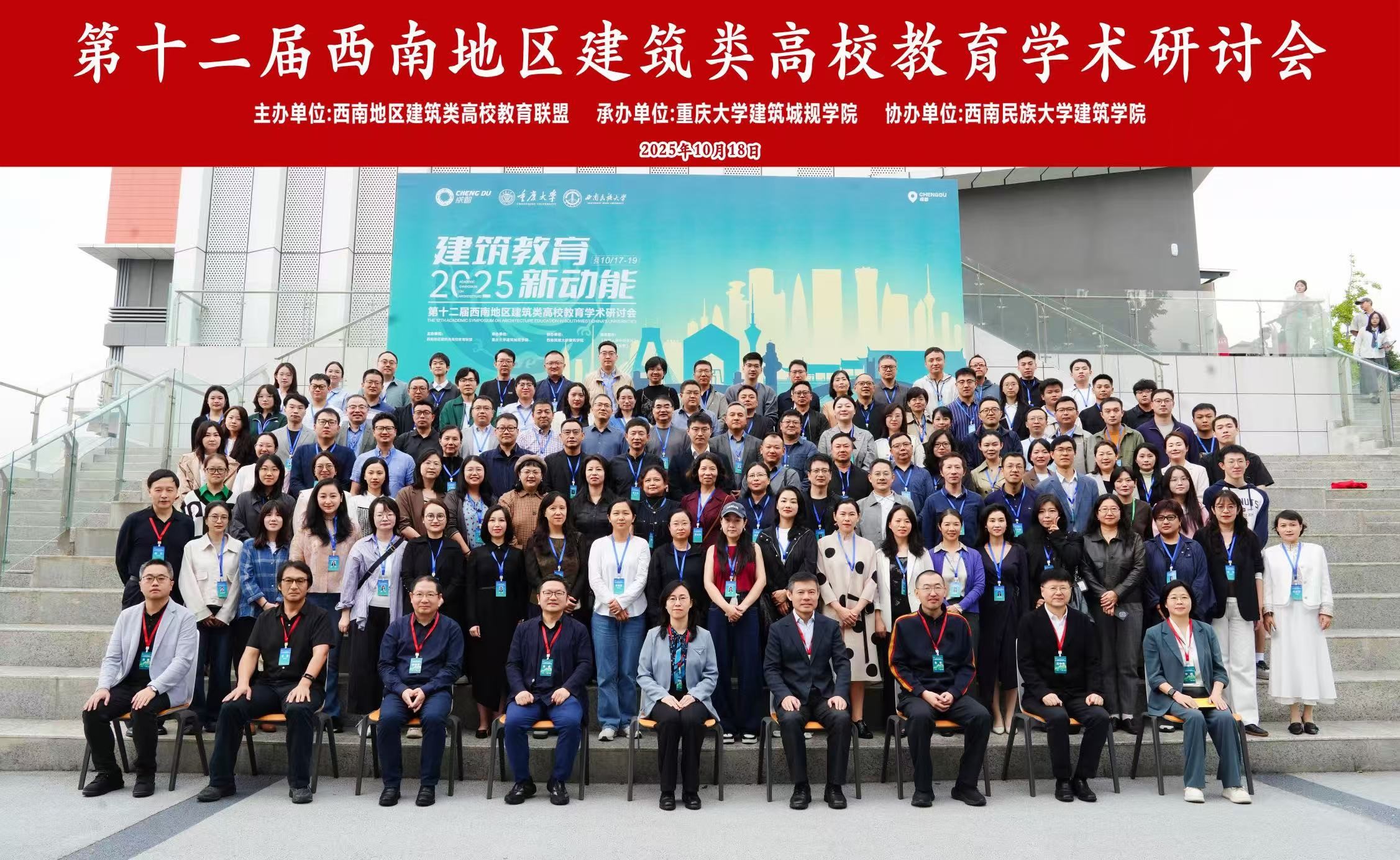 2025年10月17日至19日,第十二届西南地区建筑类高校教育学术研讨会于四川成都隆重召开。本次盛会由西南地区建筑类高校教育联盟主办,以“建筑教育·2025新动能”为主题,汇聚了西南地区建筑界与教育界的专家学者。伟德体育官网院长董莉莉教授率院长助理姚阳、建筑系主任魏晓、城市提升系主任余俏、刘华、潘崟等师生代表参加了本次盛会,积极参与多项论坛交流,并在会议上发表专题报告,展现了我校在建筑类高校教育方面的前沿探索。