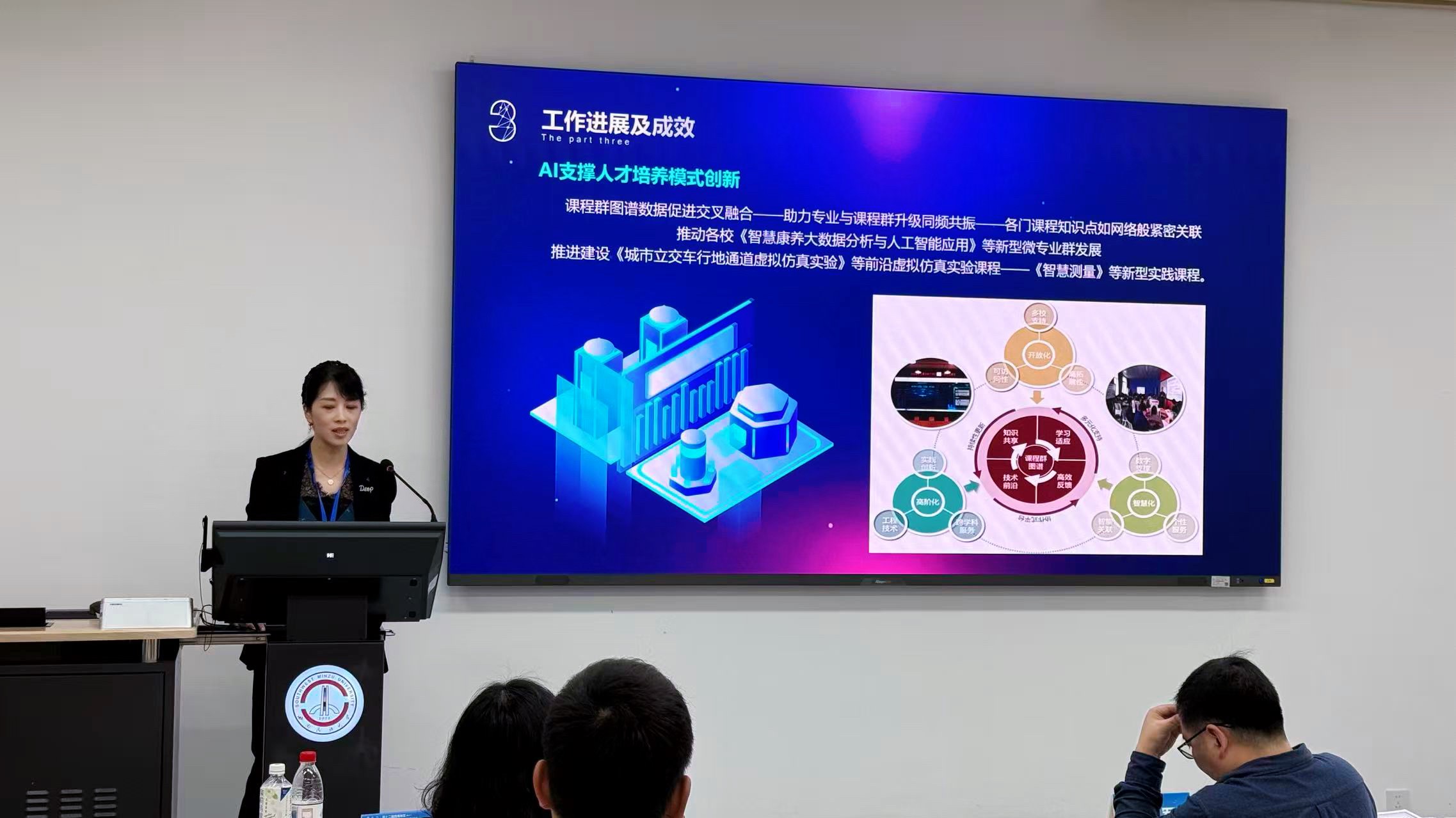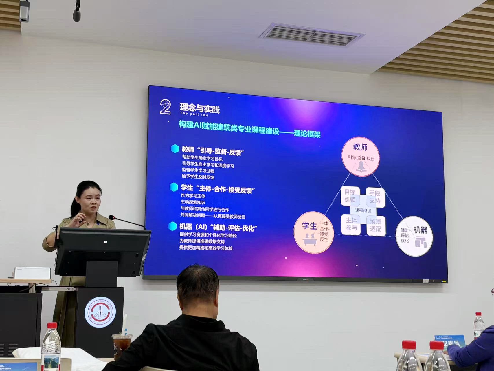 董莉莉教授应邀在大会分论坛3“成果转化与建筑教育新生态再造”,做了题目为“AI赋能建筑类专业课程建设与教学质量提升”的报告。分享了高等教育数字化教学转型的背景下利用AI工具对建筑类专业课程及教学方式进行改革的成果,解读“教师-学生-机器”三者协同的教育教学理念,结合AI技术构建知识图谱体系、多种智能体以及建筑类专业学习共享空间,形成“数、智、虚、网”四位一体的建筑类教育教学提升路径。通过优化教学资源配置、增强教学互动,重塑个性化学习模式,塑造全场景交互式学习环境,全方位促进建筑类专业人才培养质量提升,满足国家和地方对建筑类专业高层次复合型应用型人才的需求。